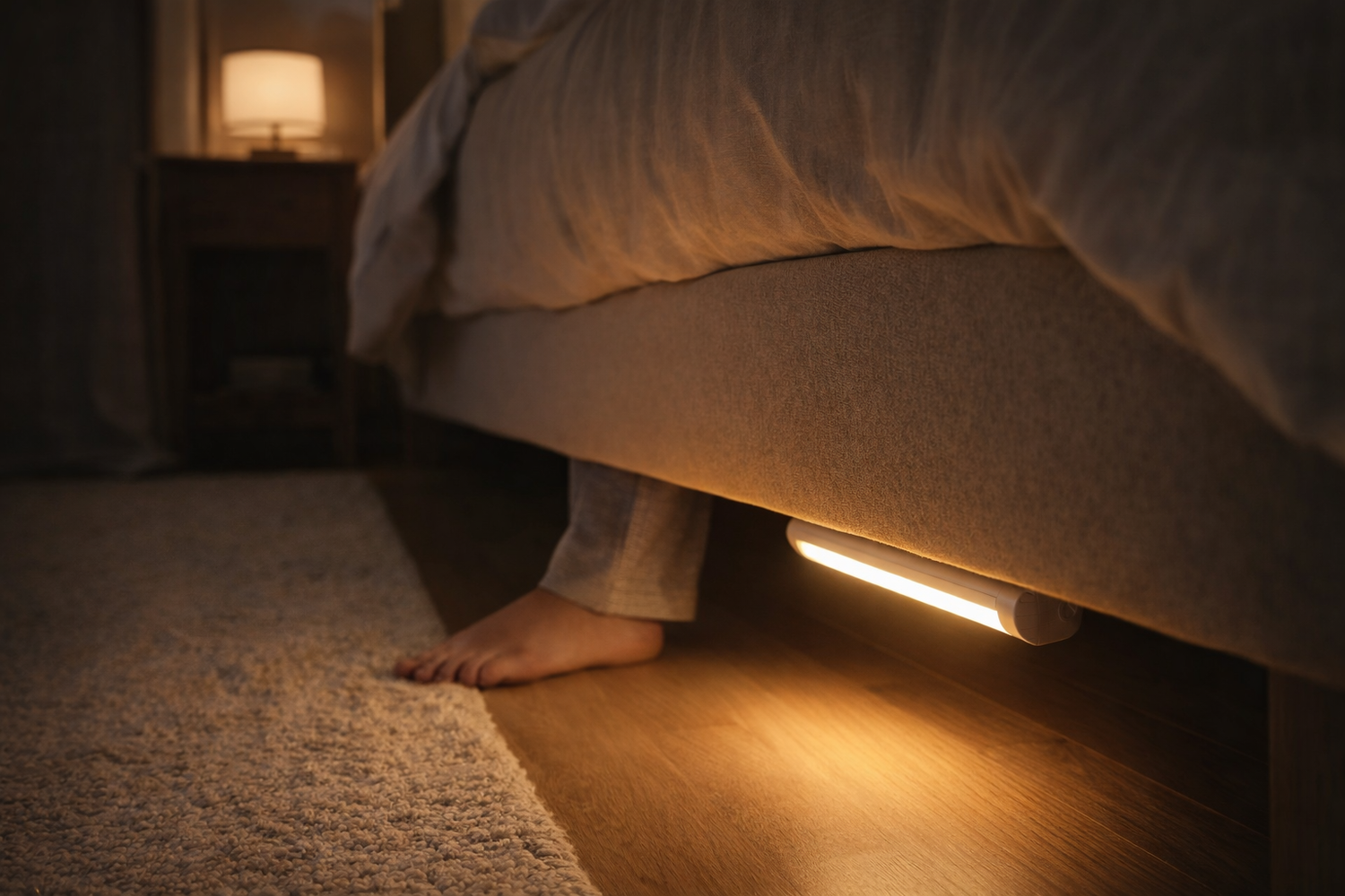 I installed this under my bed and it turns on instantly when I get up. No more harsh lights at night. Love it.